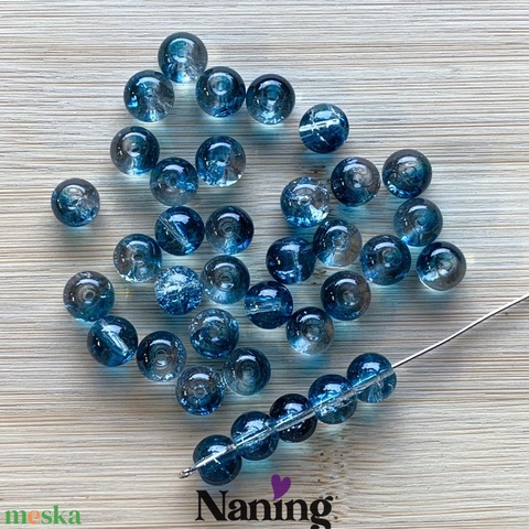 30db roppantott üveggyöngy - 8mm - átlátszó/kék (13ft/db)