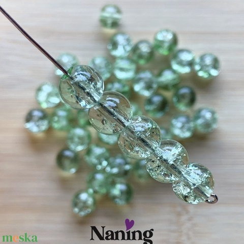 30db roppantott üveggyöngy - 8mm - átlátszó/zöld (13ft/db)
