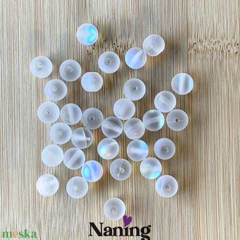 30db üveggyöngy, irizáló – átlátszó, matt fehér - 8mm (17ft/db)