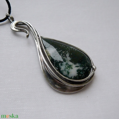 45 cm hosszú, nikkelmentes zárral ellátott szaténzsinórra akasztottam. A zsinór hosszát igény szerint méretre igazítom.