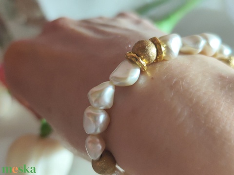 Egyedi édesvízi gyöngy karkötő arany rücskös díszítéssel!