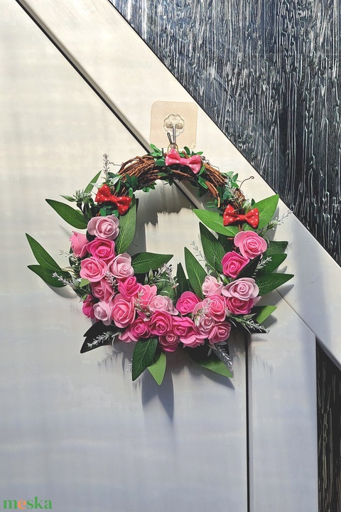 - Anyag/Összetevő vessző koszorú, textil virág, szalag, ragasztó