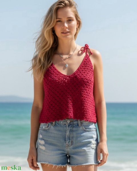 EDO-Luna horgolt nyári top – borvörös, lezser fazon, állítható pánttal (L-XL)