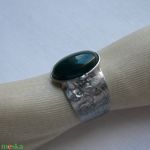 A gyűrű Tiffany technikával készült heliotróp és ólommentes, ezüsttartalmú ón felhasználásával. A díszítés szintén saját készítésű, nem tartalmaz gyári elemeket. A fémrészt óezüstre patináztam és lelakoztam, hogy sokáig szép maradjon.