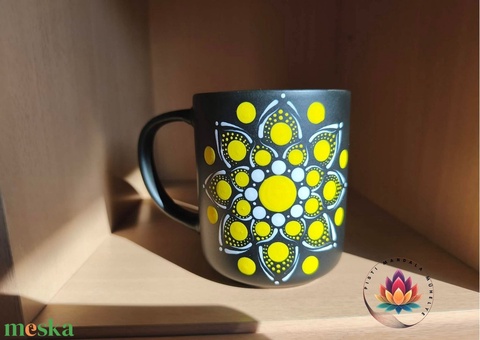 Mandalás fekete-citromsárga bögre ( 400 ml)