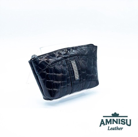 Sötétbarna lakk krokkómintás egy cipzáras egyenes swarovski köves kulcstartó E9019