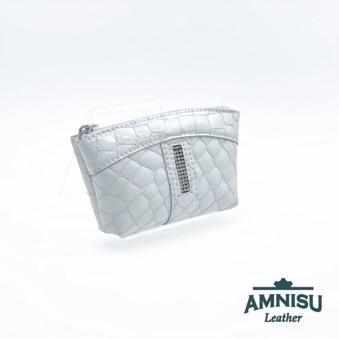 Fehér lakk krokkómintás egy cipzáras egyenes swarovski köves kulcstartó E3013