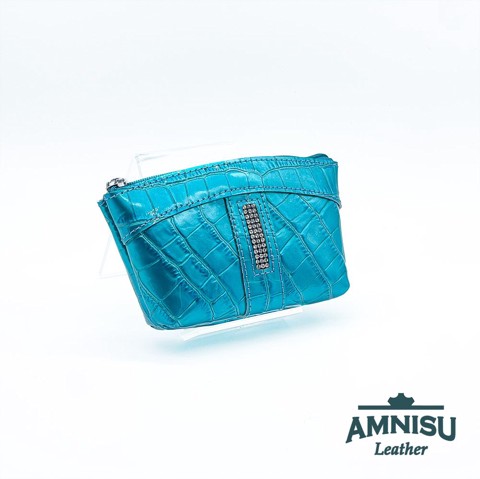 Türkizkék lakk krokkómintás egy cipzáras egyenes swarovski köves kulcstartó E6020