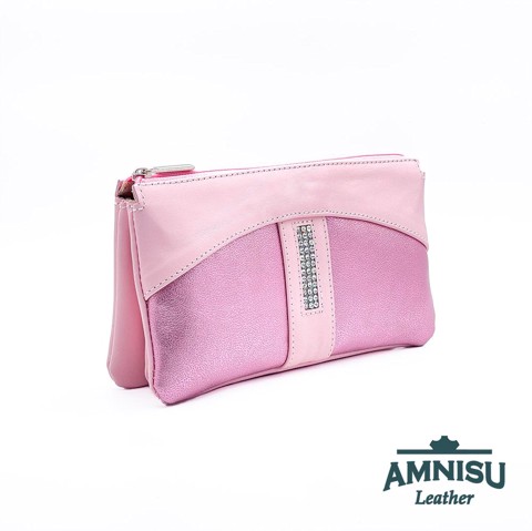 Rózsaszín - metál rózsaszín egyenes swarovski köves női pénztárca G4020-4001