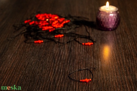 Minimalista fekete fonál karkötő piros kereszttel – Állítható csúszócsomós ékszer