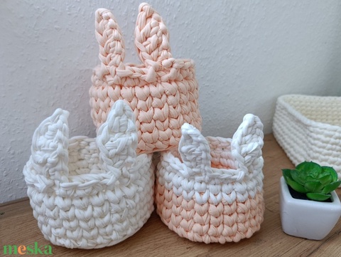 Horgolt nyuszifüles kosár
