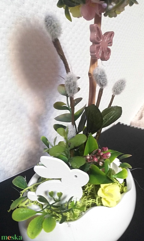- Anyag/Összetevő kerámia, tűzőhab, mű zöldek, foamiran virág, polisztirol tojás és gömb