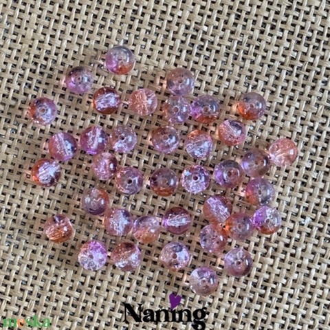 30db roppantott üveggyöngy - 8mm - átlátszó rózsaszín/narancs (13ft/db)
