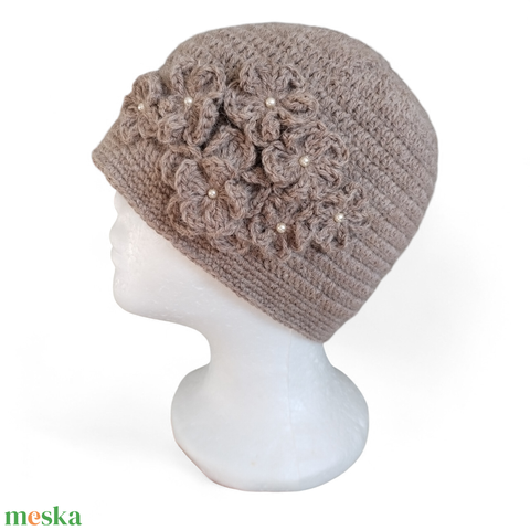 Niki rendelése - Horgolt virágos sapka gyöngyökkel