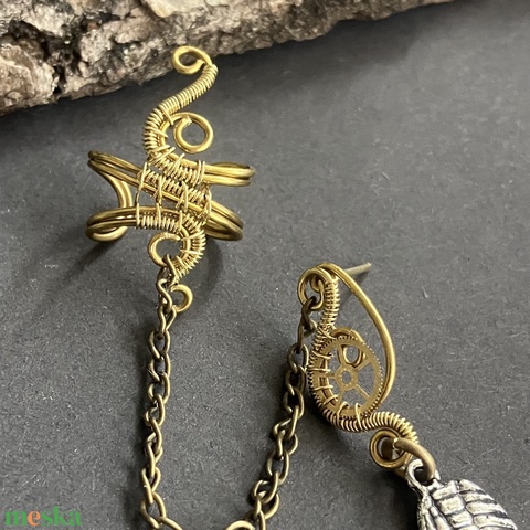 Sárgaréz láncos fülgyűrű szárnnyal