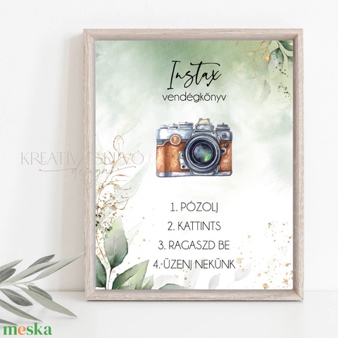 Instax, polaroid fotókönyv instrukciós tábla - pózolj, kattints, üzenj nekünk - greenery, eucalyptus