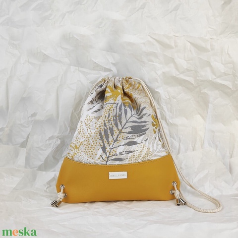 Gymbag / pálma leveles / sárga hátizsák / tornazsák / M méret