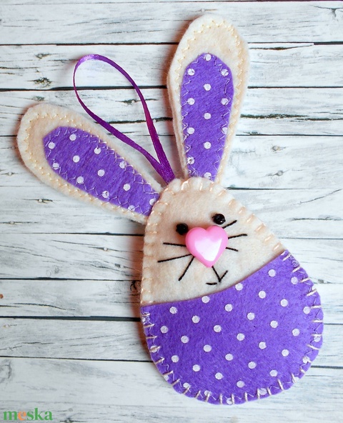 Zsebes nyuszi barkácsfilcből (ibolyalila-fehér pöttyös)