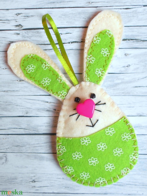 Zsebes nyuszi barkácsfilcből (fűzöld-fehér virágos)