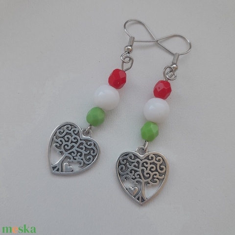Nemzeti színű fülbevaló - szív-életfa