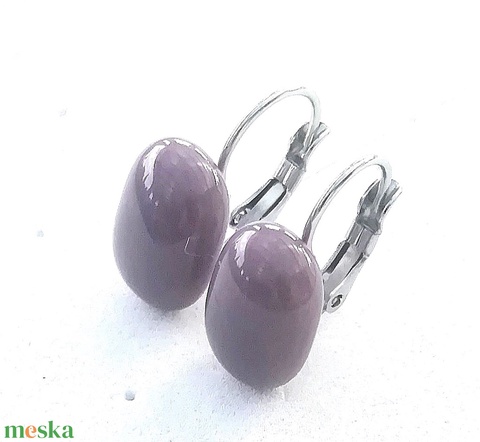 ORVOSI ACÉL! Levendula szinű kapszula formájú trendi üveg fülbevaló.