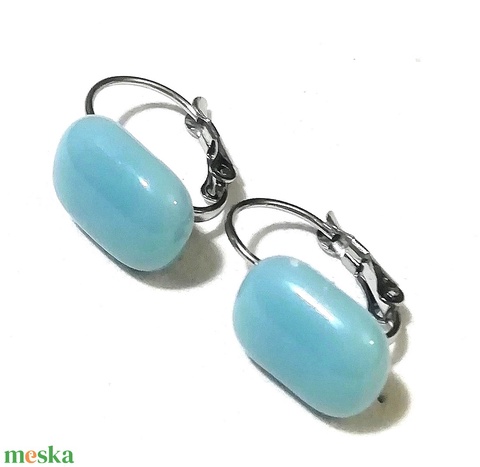 ORVOSI ACÉL! Púder Kék kapszula formájú trendi üveg fülbevaló.