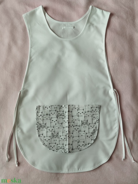 Női fehér lapköpeny, Cica 🐱 mintás zsebbel , ovis , munkaruha