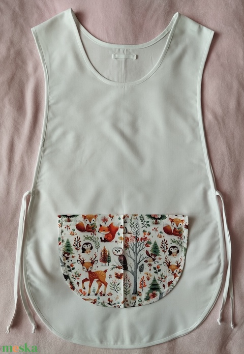 Női fehér lapköpeny, Róka 🦊,Őz 🦌, Bagoly 🦉 mintás zsebbel , ovis , munkaruha