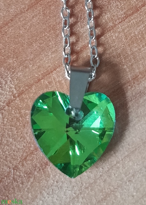 nyaklánc orvosi acél lánccal, zöld csiszolt üveg szívvel