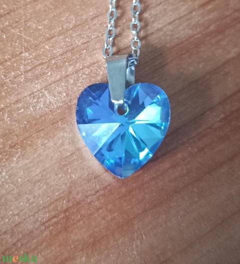 nyaklánc orvosi acél lánccal, kék csiszolt üveg szívvel