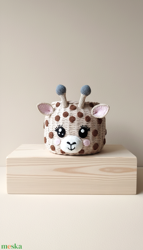 Zsiráfos tárolókosár horgolt részekkel