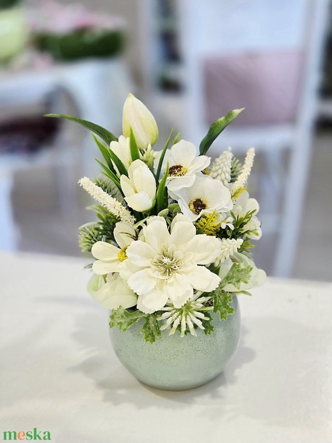 Menta kaspós tulipános tavaszi asztaldísz