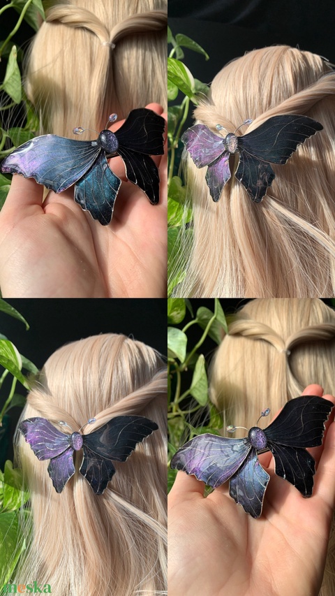 Türkiz-lila pillangós hajcsat