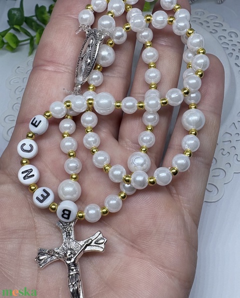 Egyedi gyöngyös rózsafüzér – személyre szabható névvel ????