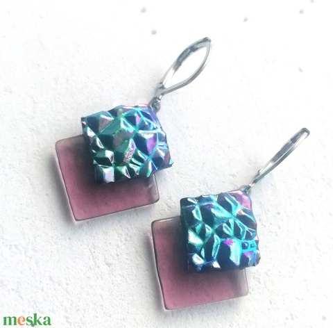 ORVOSI FÉM ! Mályvás szivárvány kockák trendi fülbevaló , ajándék névnapra, születésnapra.