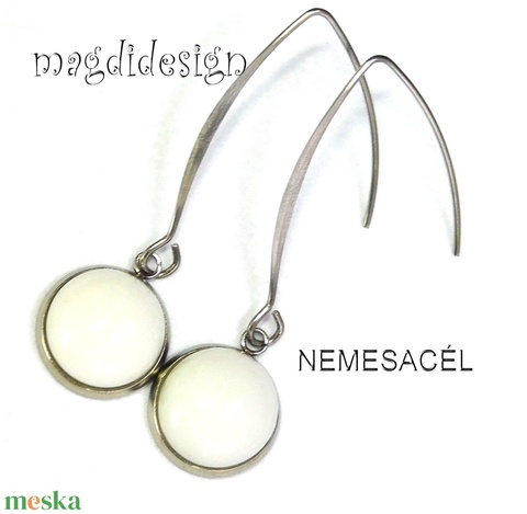 Krémfehér üvegékszer lógós fülbevaló, orvosi acél