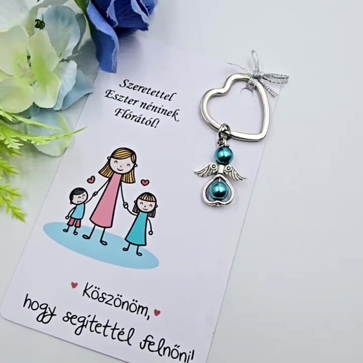 Óvó néniknek ajándék - Angyalkás kulcstartó ajándékkártyán
