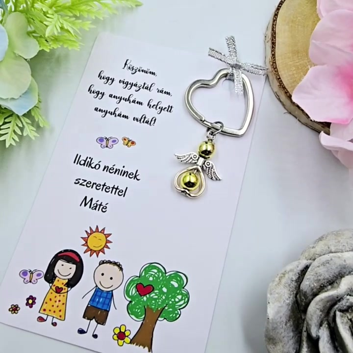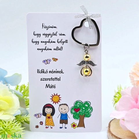 Óvó néniknek ajándék - Angyalkás kulcstartó ajándékkártyán