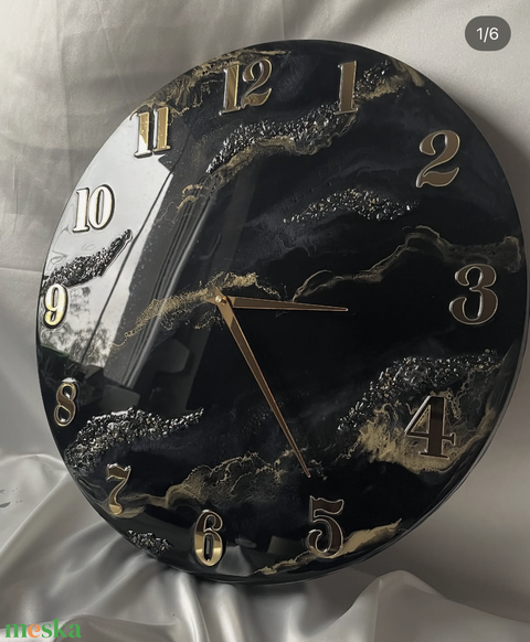 Fekete-arany epoxy falióra – elegáns kézműves design falióra