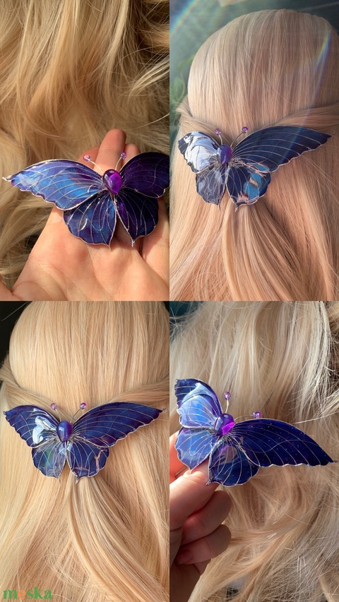 Kék-sötétlila pillangós hajcsat