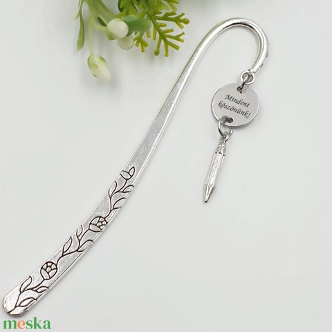 Rajz tanároknak ajándék - Gravírozott könyvjelző egyedi felirattal, ceruza charmmal