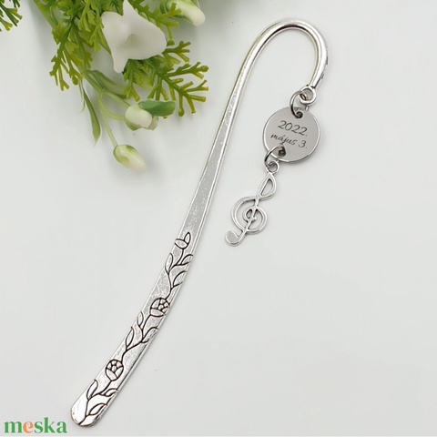 Ének tanároknak ajándék - Gravírozott könyvjelző egyedi felirattal, violinkulcs charmmal