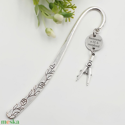 Matematika tanároknak ajándék - Gravírozott könyvjelző egyedi felirattal, körző charmmal