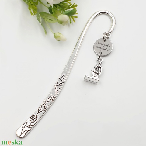 Kémia tanároknak ajándék - Gravírozott könyvjelző egyedi felirattal, mikroszkóp charmmal