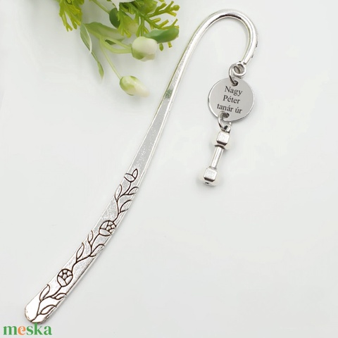 Testnevelés tanároknak, edzőnek ajándék - Gravírozott könyvjelző egyedi felirattal, súlyzó charmmal