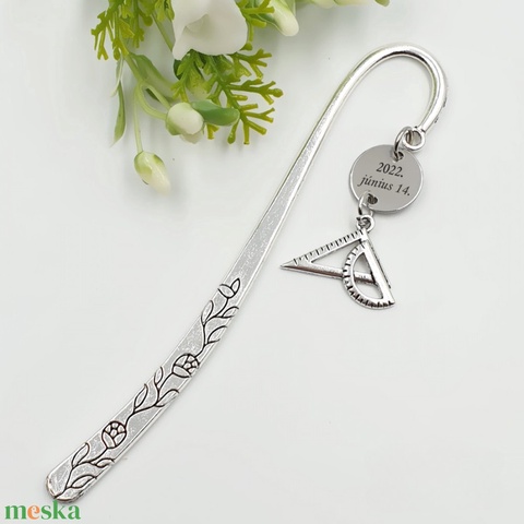 Matematika tanároknak ajándék - Gravírozott könyvjelző egyedi felirattal, vonalzó - szögmérő charmmal