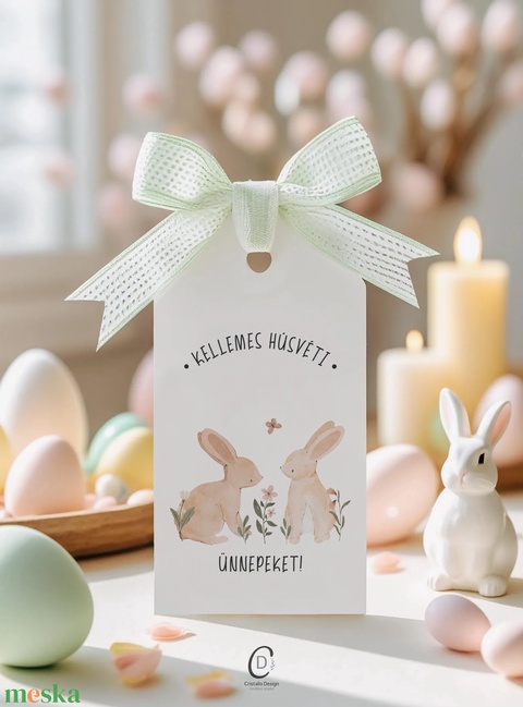 Húsvéti ajándékkísérő, nyuszis ajándékátadó címke szett 6 db