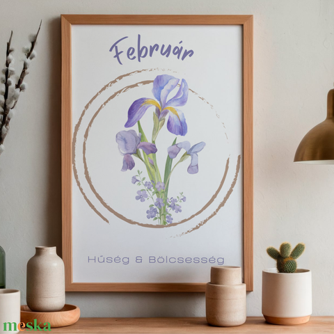 Ez a februári grafika a ibolya és a irizs kettősével a hűséget és a kitartást szimbolizálja. Tökéletes választás születésnapi ajándéknak, dekorációnak a gyerekszobába, vagy egy személyes emlékként saját magadnak.