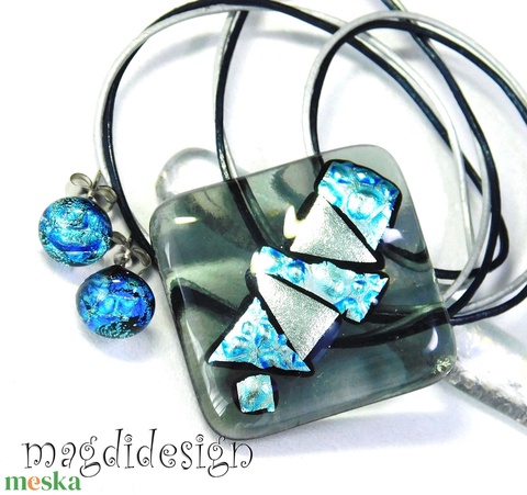 Csillogó dichroic szürkében üvegékszer szett nyaklánc stiftes fülbevaló