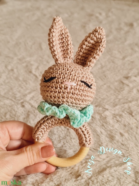 Kézműves horgolt kabala figurás csörgő rágóka (Nyuszis) 3.